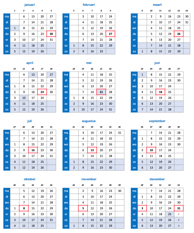 Zie hieronder de kalender voor uitbetaling 2020: